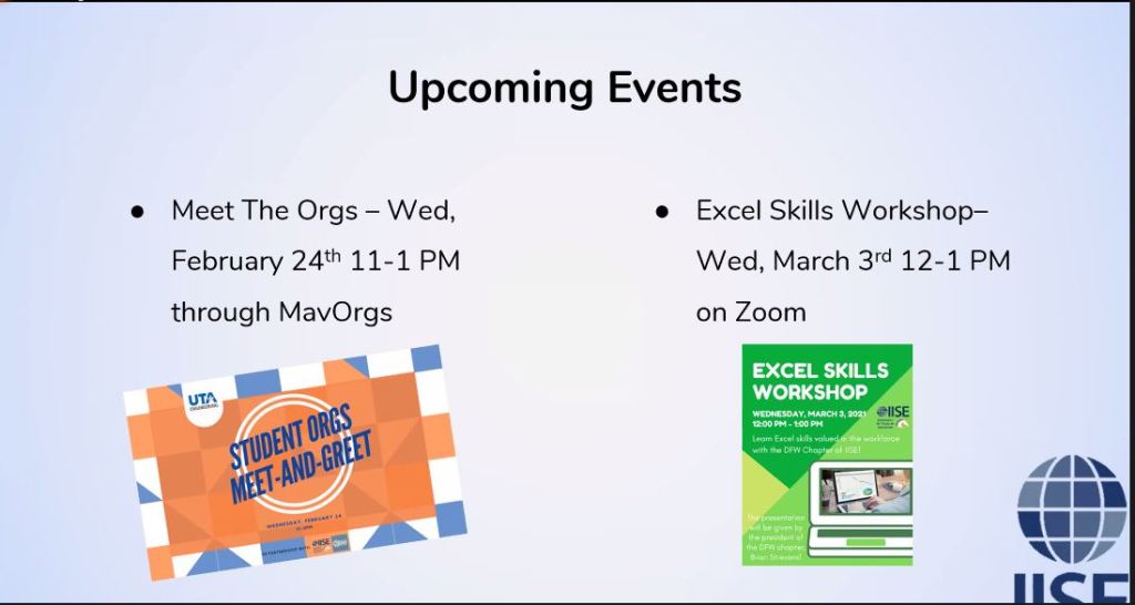 There are several upcoming events for IISE UTA student chapter members.