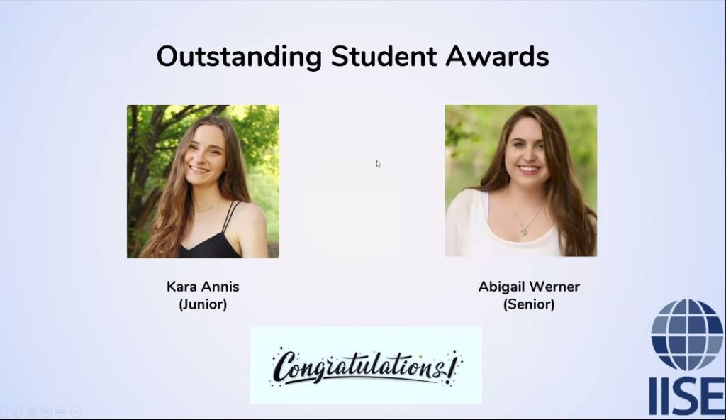 The professional chapter gave out the outstanding student awards with attendant scholarships. Congratulations to Kara Annis and Abigail Werner.