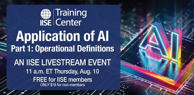 | Delve into the intriguing world of artificial intelligence with Dr. Scott Sink and a hand-picked panel — the first livestream of this new webinar mini-series dedicated to demystifying AI’s role and potential in ISE. Our esteemed panelists — Jared Frederici from The Poirier Group, Ben Amaba from Sonatype, Jon Carmona, Director of Data Analytics at Gardens Alive, and Matheus Scuta, a Senior Consultant at Deloitte — will provide unique insights and practical perspectives on AI’s fundamental concepts and applications in ISE. Building on the recently concluded Operational Analytics series by IISE, this AI-focused mini-series aims to help you connect the dots and comprehend AI’s potential and challenges within industrial and systems engineering. Registration is FREE for all IISE members. Not a member yet? No problem* – register for the livestream and broaden your knowledge horizons for just $19! The future of industrial and systems engineering is here — are you ready to embrace it? |
